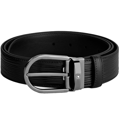 Черный кожаный ремень с подковообразной пряжкой 35мм от магазина премиальных ручек Premium Pens в Магнитогорске.