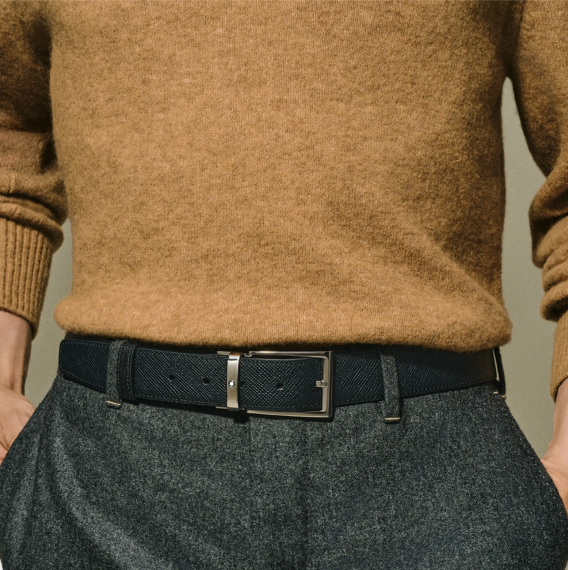 Двухсторонний мужской ремень Montblanc: кожа черного и коричневого цвета 35 мм от магазина премиальных ручек Premium Pens в Магнитогорске.