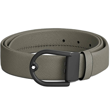 Кожаный ремень 35 мм из кожи серого цвета, пряжка в форме подковы от магазина премиальных ручек Premium Pens в Магнитогорске.
